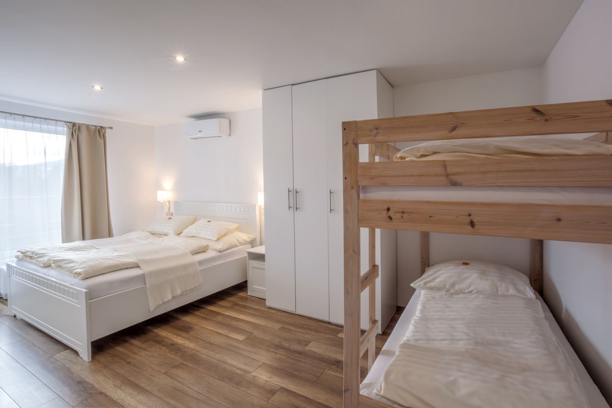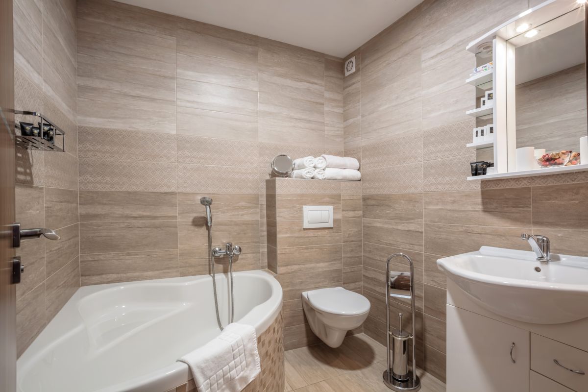 obývacím pokojem s plně vybavenou kuchyňskou linkou. Součástí apartmánu je předsíň, koupelna